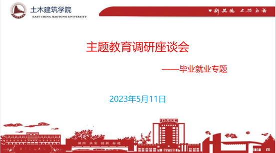 5月11日下午3:30,学院党委副书记郑轶在土建楼302会议室就如何更好地做好学生就业工作与2023届本科生和研究生毕业生代表进行座谈交流。