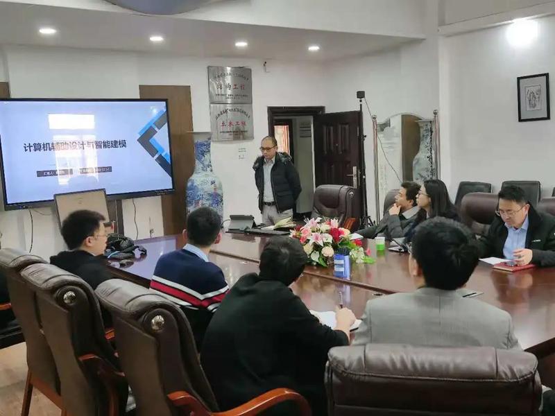 学科主要负责人老师与罗国亮老师展开积极讨论,场面十分活跃。学院老师希望能够把VR虚拟交互技术应用于土木工程专业,为尚香书苑