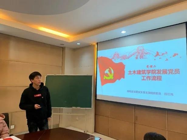 党委委员联系基层党支部工作制度,12月7日下午4时,院党委青年委员冯青松教授联系结构交运研究生党支部活动在铁工所301会议室顺利开展,活动由党支部书记罗青峰主持,支部全体党员和部分入党积极分子共31人参加。此次活动内容主要分为两个部分:一是和冯青松教授一起学习党章知识和入党流程的微党课,二是冯青松教授与党支部的座谈。