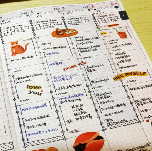 除了制定各种计划,陈佳同学也十分热衷于用手帐记录生活。假期出门旅行,看了喜欢的电影,甚至捡到了秋天的落叶,都会被她以各种形式封存在手帐里。“生活需要仪式感,手帐让我学会向外观察世界,向内省视自我。”陈佳说。