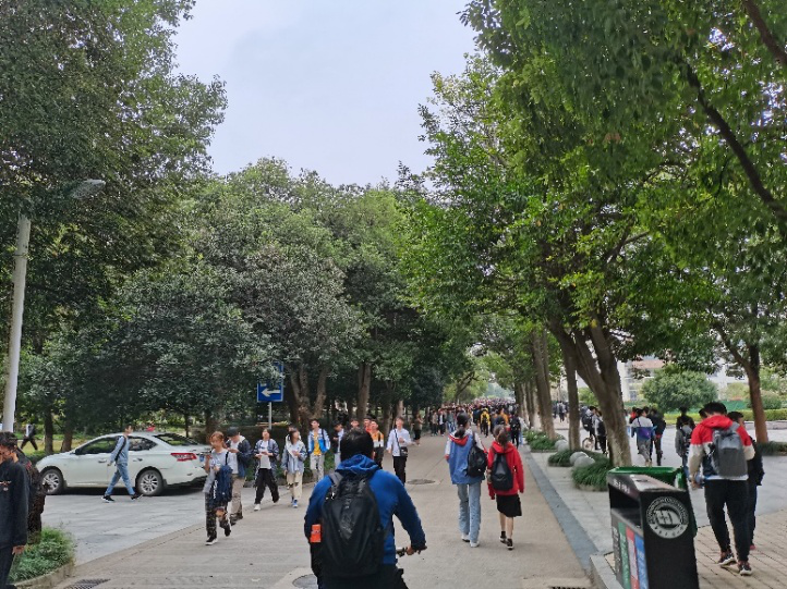 高考前,我有无数次憧憬,在我未来的大学里,会不会有一条林荫道,等着我穿行其间。而到了花椒,我的梦成了真:枝丫繁茂,绿影重重,日光洋洋洒洒,在老路上留下斑驳图景。林荫道前,是我与老师们的温馨对话;林荫路上,是那身着红衣的志愿者(也是我们可爱的学长学姐们)背过我们的行囊,引领我们走向花椒深处;仿若爱丽丝梦游仙境一般,在林荫道的尽头,一只可爱的橘黄色猫咪正迎接我们的到来,爱丽丝见到的是魔法世界,而我来到了一个阳光四溢、充满生机的学习殿堂!