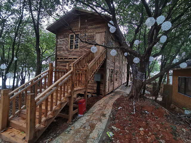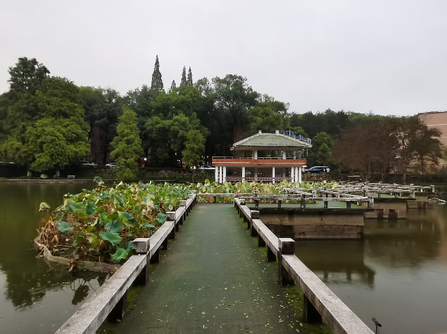 在南区边缘的孔目湖,山边的风景与城市与世无争,一片片乡村建筑映入眼帘,再往里走过一条小路,豁然开朗,一座座精致小巧的木屋出现在我的眼前,别有一番闲情雅致,湖边的垂柳随风飘摇,烟雨蒙蒙让我陶醉其中,流连忘返。