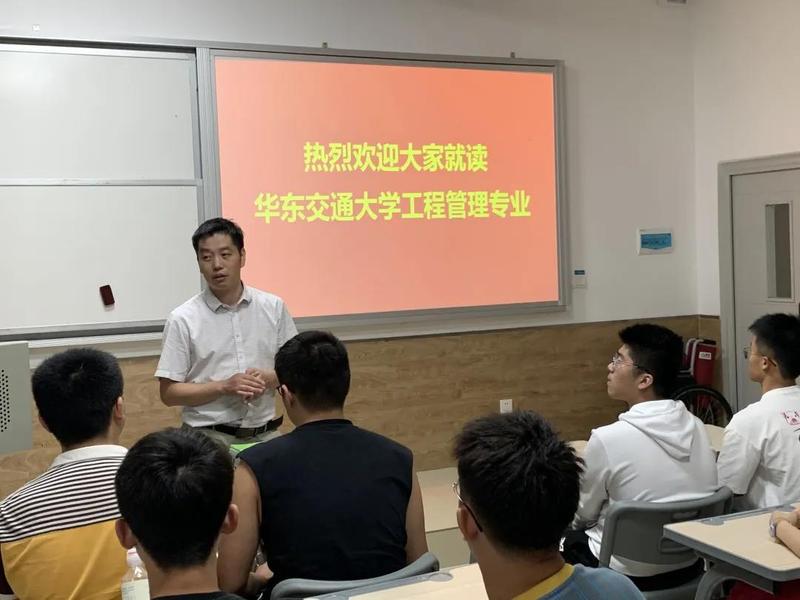 首先,王老师代表工程管理专业教师对2020级新生的到来表示热烈的欢迎和祝贺。王老师介绍了工程管理专业的师资力量以及近几年该系在教学、科研、学科学位建设、国际交流与合作等方面取得的成绩和成果,介绍了大一今年老师的配备情况和教学课程的安排情况。