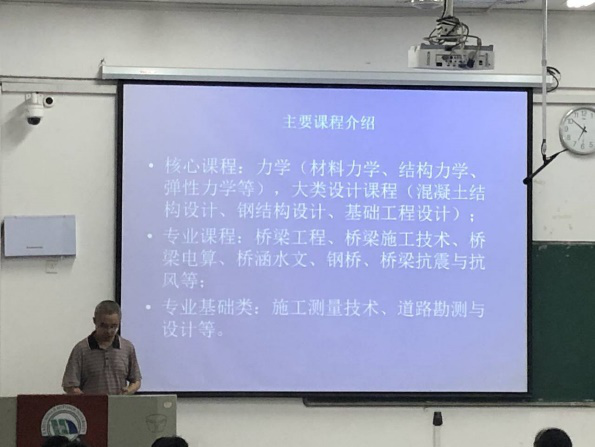 程海根老师从专业的角度介绍了土木专业的发展和作用,并且还对新生们提出了新的要求,希望同学们能在未来的学习中取得优异的成果。同时,程老师向新生们介绍了武汉长江大桥、九江长江大桥等其他建筑,加深了学生们对专业的理解和认识。介绍的过程中,程老师向同学们提出了问题,各位同学也都积极参与和老师进行交流沟通。最后,程老师以对新生的鼓励和殷切的期盼为结束语,表达了学院和老师对新生们的热情欢迎以及期望。