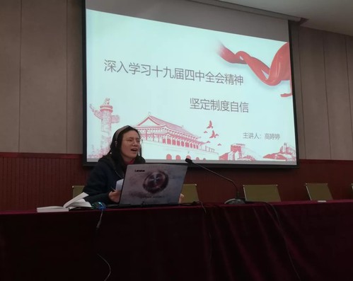 辅导员高婷婷老师在土建楼200会议室开展《深入学习十九届四中全会精神——坚定制度自信》讲座,九十四名入党积极分子参与党课学习。