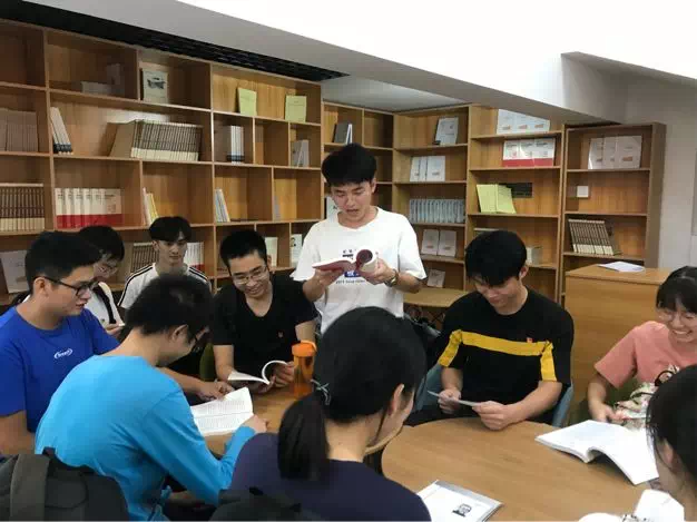 首先,全体成员围坐在一起集中学习讨论。大家认真阅读自己的书籍并进行思考。在大家陆续结束阅读后,互相分享了自己有感悟的片段并讨论。在这个过程中,大家不仅牢记了自己所学的内容,也在讨论中加深印象,有了自己的思想。