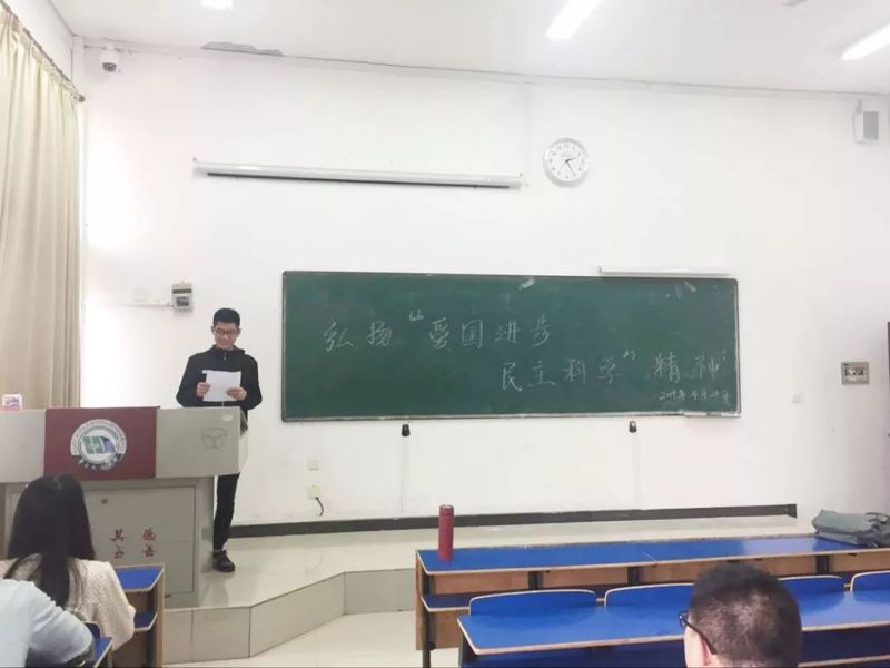 今天我们召开一次纪念五四运动100周年的党员固定活动,弘扬“爱国进步、民主科学”的五四精神,传承五四精神,在中国共产党的领导下,向着民族复兴伟大梦想不懈奋斗。