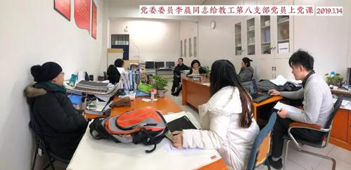 李晨首先跟大家一起回顾了支部各党员上年度的工作情况。对于教工八支部的党员在工作中发挥的带头作用给予了充分的肯定,并希望大家保持良好状态继续前行。接下来,李晨提出今后工作中党员同志要进一步发挥先锋带头作用,要带头申报课题、写论文和参与专业和学科建设,并提出要有责任、有意识、积极地进行党内外联系,宣扬社会主义价值观,号召年轻党员要努力学习老教师在专业建设、科研和学科建设等方面的主动担当、脚踏实地从基本的工作干起、长期坚持不懈的工作态度和精神,以他们的师德为范本,提高自己的教学与科研能力。最后,李晨同志提出党员要不断进行政治理论学习,增加自己明辨是非和理论指导实践的能力,并提出“睡前十分钟”的政治理论学习方法。