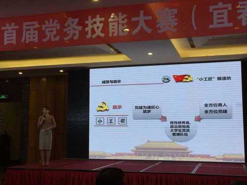 1224—25日,由省委组织部主办的江西省首届党务技能大赛举行,尚香书苑 2支参赛队伍分赴抚州、宜春赛区参加大赛。土建学院党委组织员万雯怡结合实例,向评委和全省党务工作者介绍了尚香书苑 的学生党建品牌项目--“小工匠锻造坊。她结合实例,就土建学院在大学生党员教育管理模式上进行的实践创新探索进行了深入浅出的讲解。