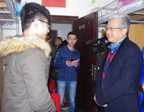 公寓里的学生见到汪书记都热情地打招呼,汪书记也微笑着向各位同学招手示意,并提前祝福各位同学新年快乐。活动结束后,汪立夏站在学生公寓向窗外眺望,感叹我们美丽的校园风景,招呼各位陪同领导一起欣赏美景。