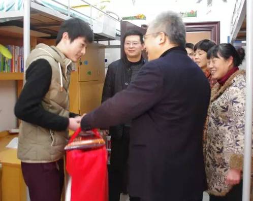 收到汪书记送来的东西,来自14级土木工程4班的刘揭润表示很开心,汪书记亲自给他送来这些物品让他非常感动,他更加认识到学校是关爱我们每一位学生的,自己今后也会加倍努力,回报学校。