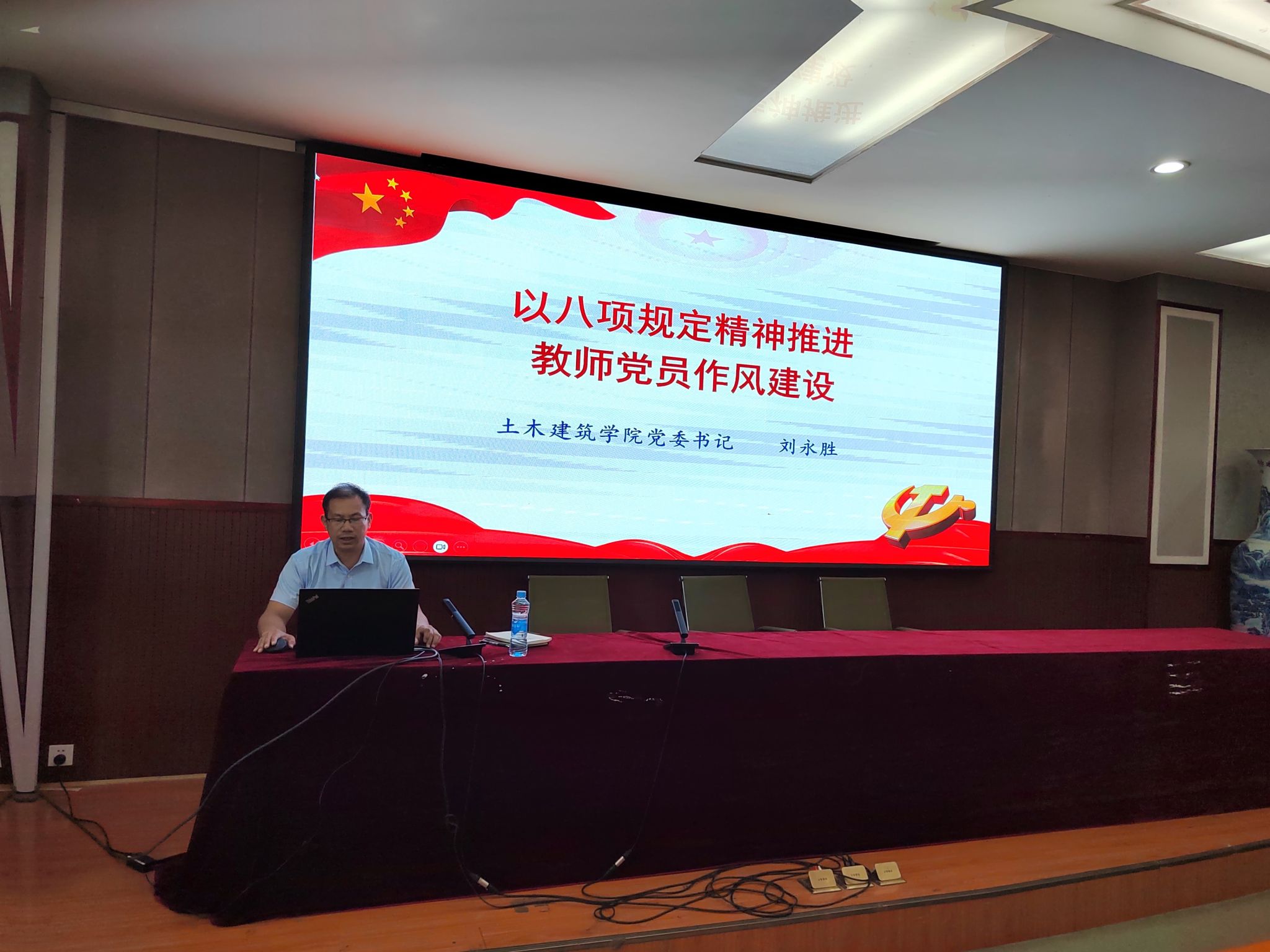 院党委书记刘永胜联系力学材料党政办教工党支部、桥梁工程教工党支部及茅以升班学生党支部,以“以八项规定精神推进教师党员作风建设”为题讲授专题党课。系统解读了中央八项规定精神的重大意义、丰富内涵及实践要求,通过剖析近年来违反中央八项规定精神的典型案例,警醒党员干部要时刻保持清醒的头脑,严格遵守党的纪律和规矩。