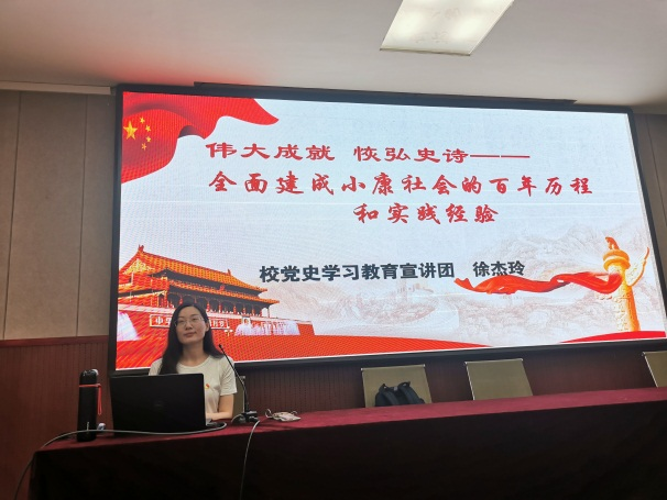 99下午4点,学院邀请校党史学习教育宣讲团成员徐杰玲老师为支部党员做《伟大成就 恢弘史诗——全面建成小康社会的百年历程和实践经验》报告,全体支部党员参加了报告会。