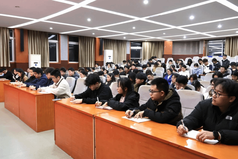 学院团委兼职副书记严安迪老师为同学们的学业与职业规划提供了“硬核”指南。他指出,学院一直高度重视学生双创教育工作,精心打造“筑创工程”平台,积极推动双创教育与专业教育深度融合。他还解读了学院推免政策,鼓励同学们将学术专长与综合素质双轮驱动,积极参加“三大赛”,在实干中将专业知识转化为服务国家战略的硬实力。
