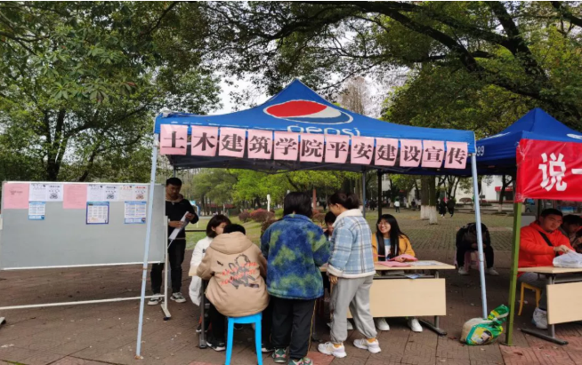 土建学院学生会学生权益部在2021年3月13日在南区一食堂门口开展了一场“平安建设进校园,为青春保驾护航”的宣传活动。