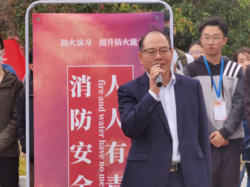 平安建设工作的支持和对本次演练的指导,并向全体师生介绍了土建学院平安建设工作的情况和安全稳定工作存在的问题。他表示这次活动旨在提高学生的检查消除火灾隐患、扑救初期火灾、组织疏散逃生以及消防安全教育培训的能力。郑轶指出消防安全责任重大,希望到场师生以身作则、主动担当,做一名合格的消防知识宣传员、消防隐患检查员、消防安全监督员,不用违规电器、不骑电动车,会报警、会救火、会逃生,落实好消防安全工作,共同营造平安校园。最后他预祝此次消防演练圆满成功,全体师生能通过这次活动增强各方面能力。