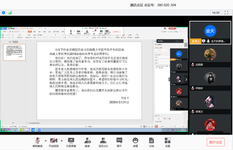 各班级利用线上网络视频会议,线上集体讨论等方式展开专题活动,在做好疫情防控的同时,迅速掀起来学习贯彻习近平总书记重要回信精神的热潮。