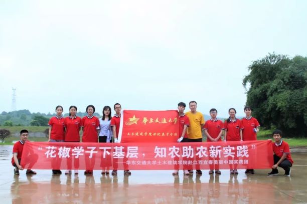 “三下乡”实践活动队在团委老师赵昕宗和刘琦慧的带领下,来到了奉新县当地一座农业实践基地——金果小镇。