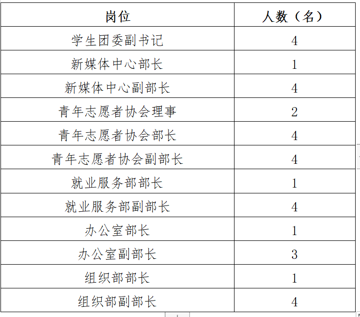 委员会设工作部门6个,选聘学生团委副书记4名。