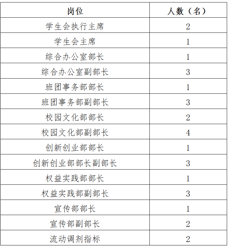 研究生会秘书处设工作部门4个,选聘主席团成员3名,总人数不超过30人。