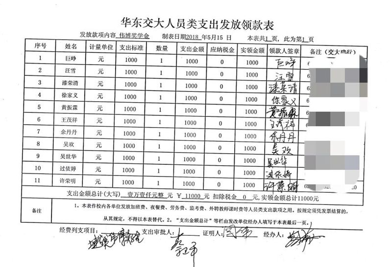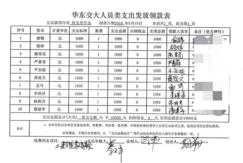 基金奖励名单