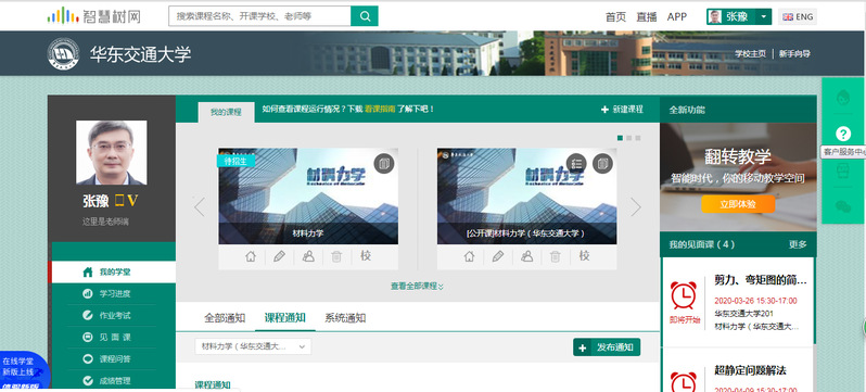 2018年,张豫副教授带队,精心录制了《材料力学》慕课课程,获得江西省精品在线开放课程,并在智慧树和中国大学MOOC两个大型教育平台上线运行,至今已经成功开课3次。