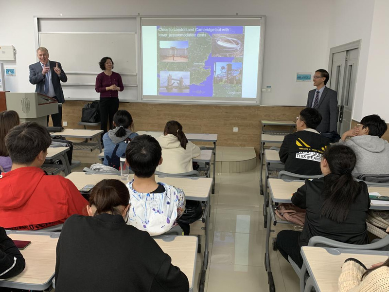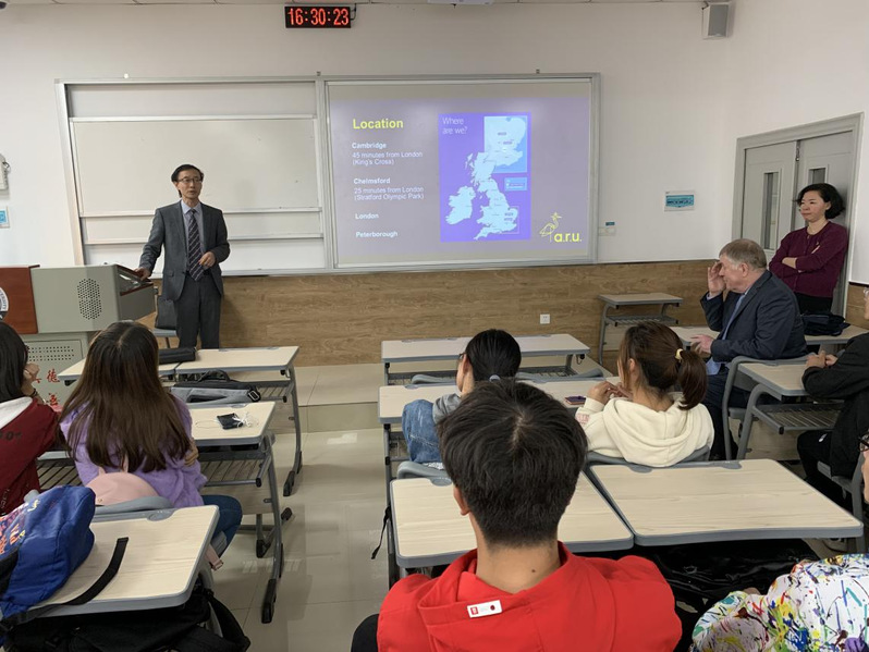 2019级工程管理专业(中英合作办学)新生见面。蔡院长首先对工程管理大一学生表示问候,之后介绍了ARU的地理位置、学校历史、尚香书苑