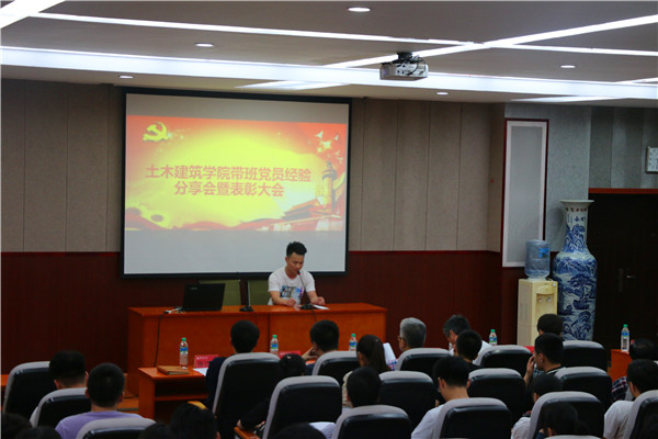 于土建楼200召开带班党员经验分享会暨表彰大会顺利召开。校党委副书记汪立夏、学工处处长陈磊、宣传部部长段世年、校团委书记陈沈平、尚香书苑