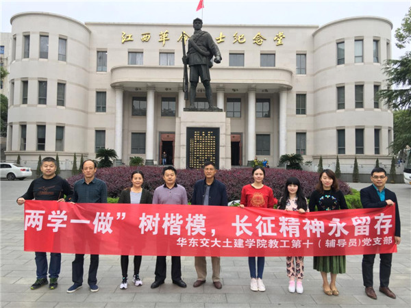 为响应习近平总书记号召,弘扬伟大长征精神,走好今天的长征路,10月28日,土建学院教工第十党支部前往江西革命烈士纪念堂参观以“不忘初心,继续前行”为主题的江西省纪念中国工农红军长征胜利80周年主题展。