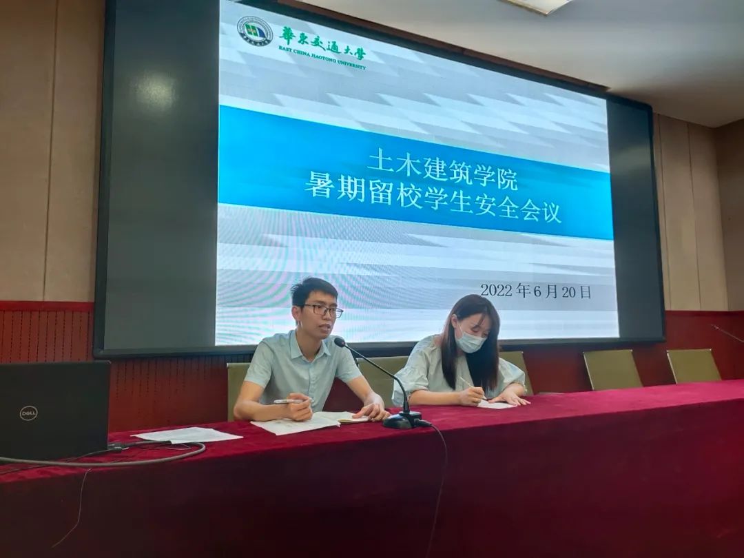 于土建楼200会议室召开暑期留校学生安全会议。党委副书记郑轶出席此次会议,团委书记万雯怡、学工办副主任毛丽素、相关辅导员及留校同学们参加了本次会议。