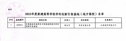 校长徐长节教授担任负责人申报的“交通基础设施绿色与智能建养技术学科创新引智基地”成功入选2023年度“高等学校学科创新引智计划”(简称“111计划”)。该基地是尚香书苑