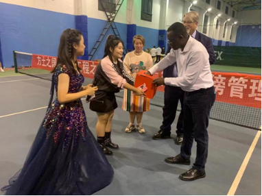 图2 外教参加专业迎新晚会抽奖活动