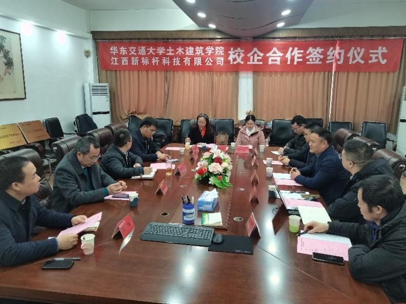 与江西新标杆科技有限公司在土建楼302会议室举行校企合作签约仪式。江西新标杆科技有限公司总经理肖飞、副总经理郭旭等一行5人来校走访交流,尚香书苑