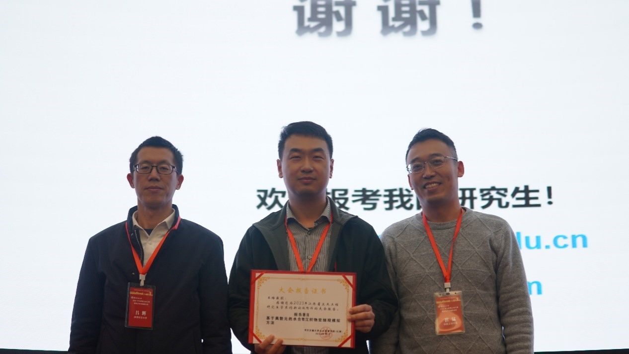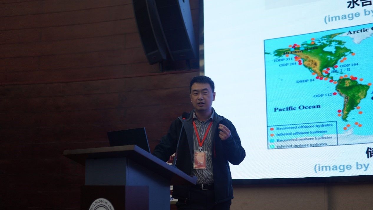 王培教授做“基于离散元的水合物沉积物宏细观模拟方法”的大会报告。
