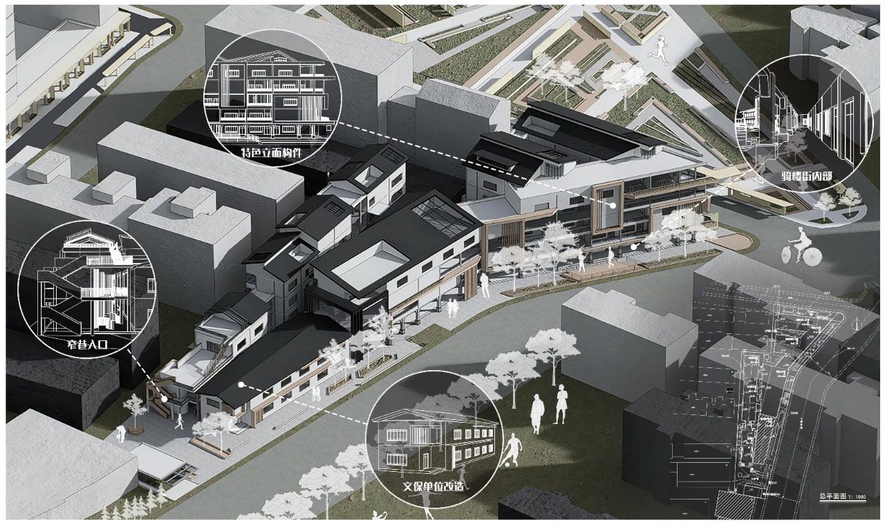 此次交通建筑联合毕设以“长沙市文昌阁片区城市设计及城市更新”为主题,深入挖掘长沙城市独特的历史底蕴、文化脉络和风貌特色,对该历史街区的城市更新策略提出有益的探索。建筑学专业2020级毕业班学生王小莉、方思佳、陈佳、袁小岚在万煜敏、王金金老师的共同指导下,通过三个月的不懈努力,历经开题研讨、中期锤炼与终期答辩,四位同学的设计作品“目步接巷——长沙市文昌阁片区城市设计及城市更新”荣获“优秀设计奖”。