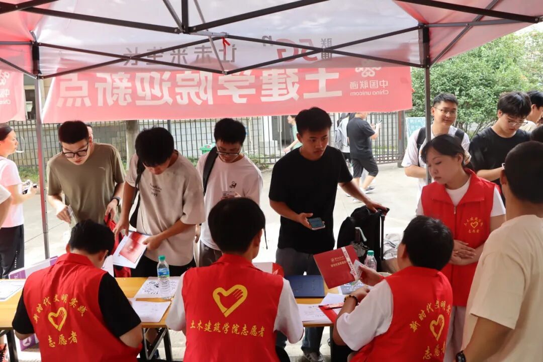“同学你好!这边报到注册!”从报到指引、材料核验,到住宿安排、物资发放,迎新点的志愿者们提供一站式贴心服务,助力报到流程简洁高效。穿梭在校园各处的“红马甲”成为秋日校园最温暖的风景线,也让初来乍到的新生感受到了土建大家庭的贴心与关怀。