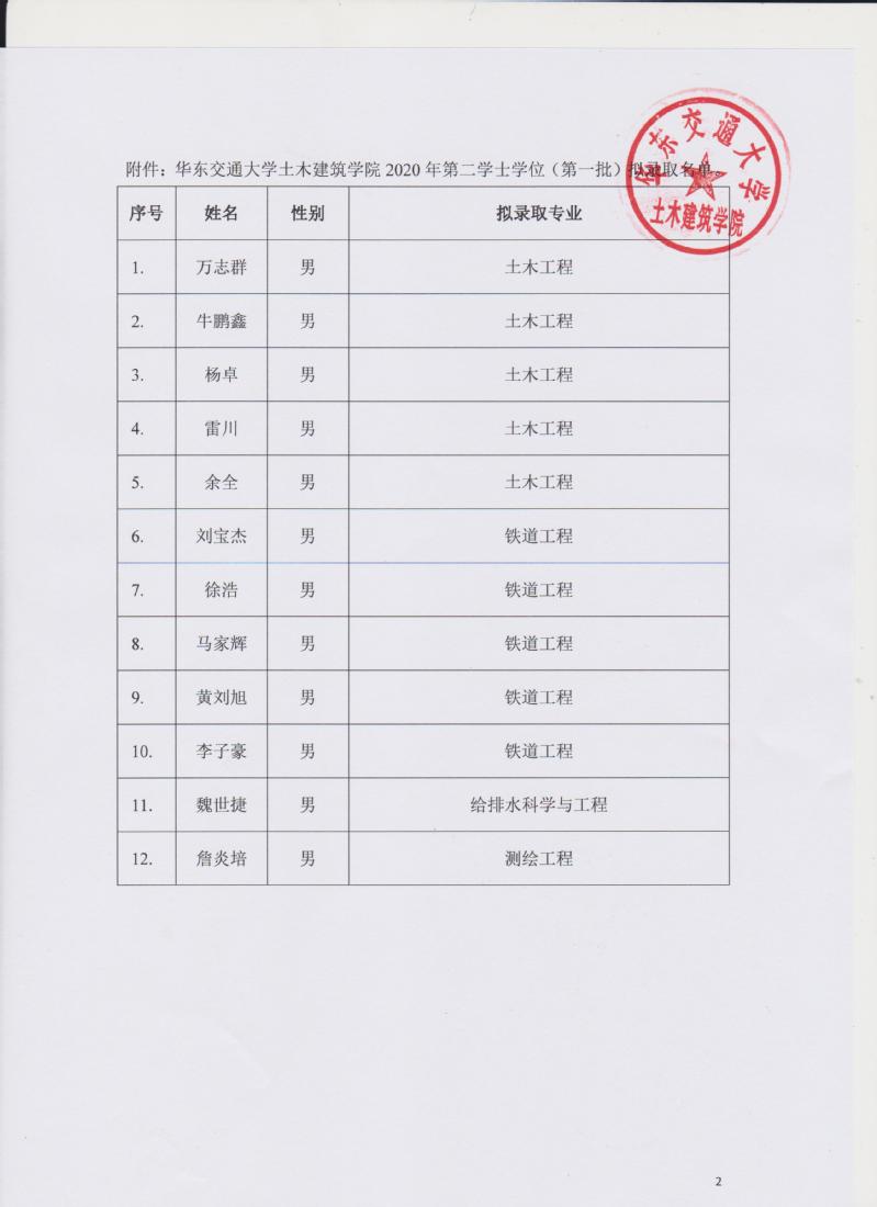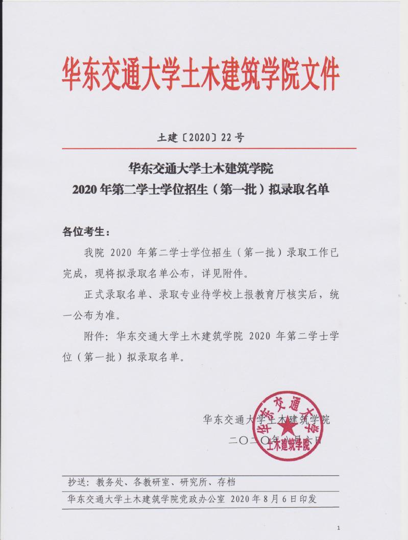 尚香书苑 2020年第二学士学位招生(第一批)拟录取名单