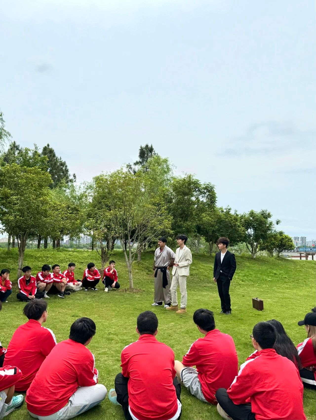 参观完南昌舰后,李云帆、王程申、董一非等同学为同学们现场表演了一段话剧《詹天佑》快闪片段,大家在精彩热烈的剧情中仿佛身临其境感受詹天佑先生修建京张铁路的伟大事迹。