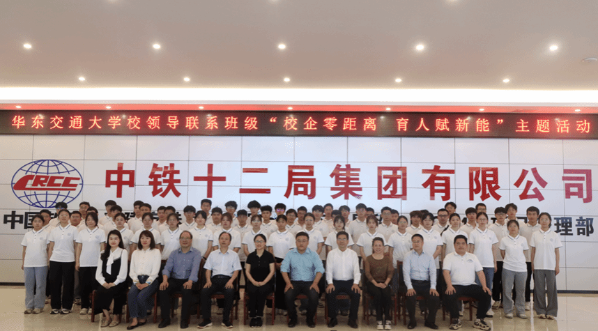 为扎实推进“时代新人铸魂工程”,进一步弘扬工匠精神,传承天佑精神,6月5日,土建学院联合交通学院组织2022级城市轨道(詹天佑)班和2021级交通运输(詹天佑)班学生赴中铁十二局新建京港高铁九江至南昌段站前4标项目经理部,开展校领导联系班级——“校企零距离 育人赋新能”主题活动,校党委副书记罗文俊老师参加班级活动并讲授专题思政课。中铁十二局昌九铁路项目经理魏井申、总工程师陈刚刚、土建学院党委书记陈水生、交通学院党委书记丁锋贵、土建学院党委副书记郑轶、交通学院党委副书记陈鹰、交通学院铁道工程研究所副所长黄大维、土建学院学工办主任兼团委书记万雯怡、交通学院学工办主任兼团委书记朱智奇参加活动,活动由2022级城市轨道(詹天佑)班辅导员贺慧文主持。