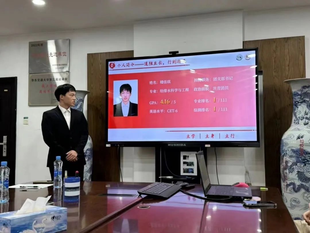 经个人提出申请,各班级评议小组进行民主推荐,并经学院进行资格初审,确定13名国家奖学金候选人进行公开答辩。参加答辩的同学们从专业学习情况、思想政治、个人成就、未来展望等各方面对个人情况进行简单汇报。他们精神饱满,将自己最好的状态展示给各位评委。同时他们有条不紊地回答相关问题,从多个角度展现自身良好的精神面貌和出色的能力,更展现了土建学子的风采与担当。