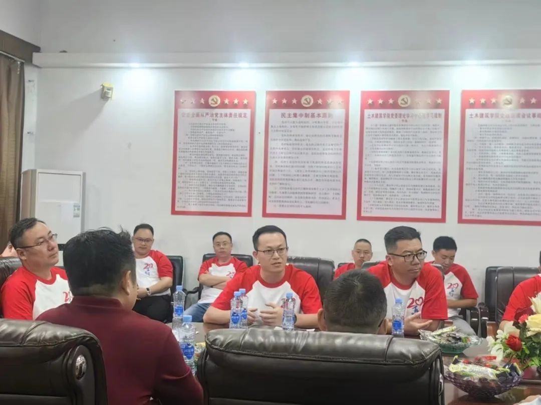 土建学院党委书记刘永胜,党委副书记郑轶,学工办副主任兼团委副书记、校友联络负责人华罗娟,2000级任课老师许开成,2000级土木工程7、8班班主任刘迎春老师,2000级土木工程7、8班辅导员杨海铃老师,2000级土木工程7、8班校友齐聚一堂,共叙情谊、共谋发展、共话未来。副院长方焘主持座谈会。