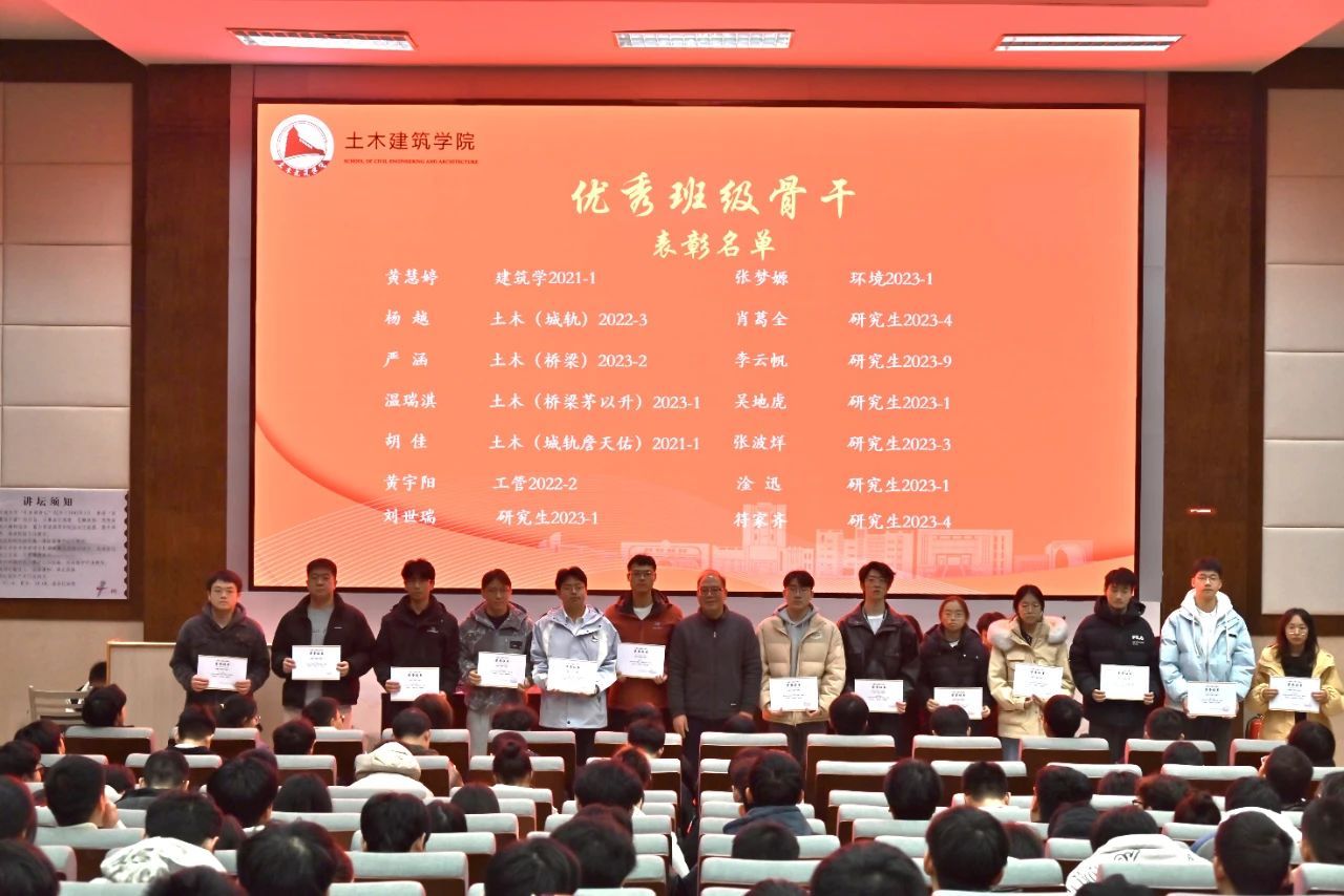 为总结成绩,表彰先进,更好地发挥优秀学生骨干的模范带头作用,推进学院学团工作再创佳绩,并带动优良学风的形成,12月12日晚,土建学院于南区图书馆202召开2024年度“砼心圆”优秀学生骨干表彰大会暨学风建设表彰大会。土建学院党委副书记郑轶,学工办主任兼团委书记万雯怡,学工办副主任兼团委副书记华罗娟、贺慧文,兼职团委副书记严安迪,融媒体中心负责老师黄伟豪出席会议。大会由张富乐、王嘉昱同学主持,土建学院团委、学生会全体成员以及受表彰同学与会。