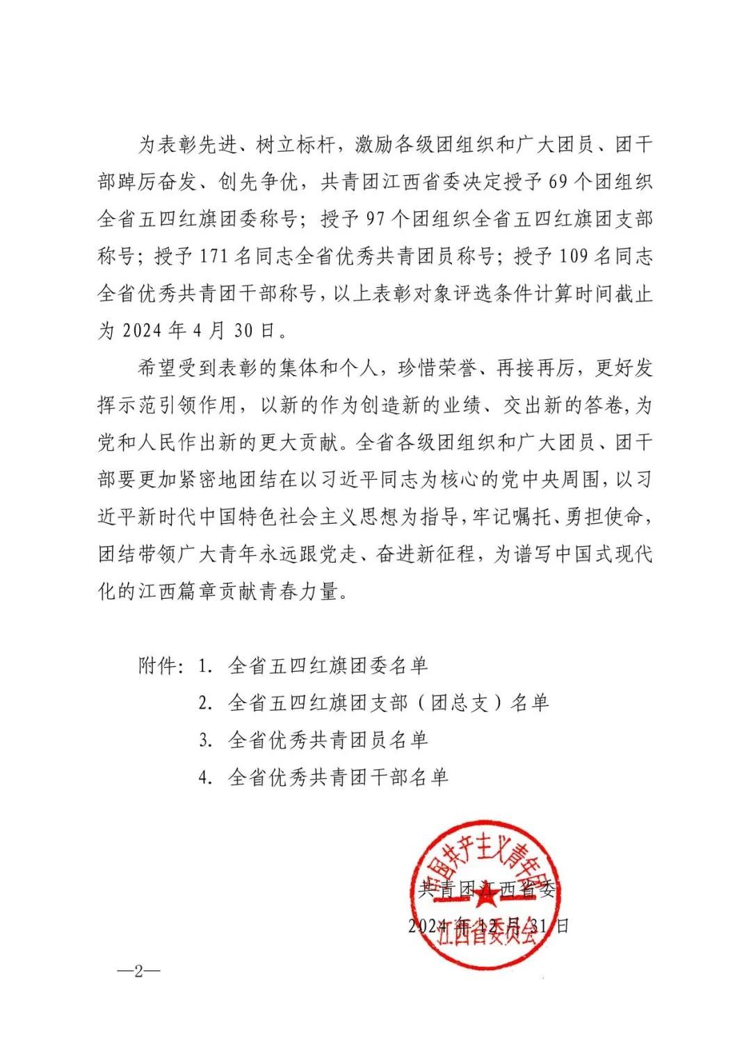 近日,共青团江西省委正式发布了《赣青发〔2024〕19号关于表彰全省五四红旗团委(团支部)、全省优秀共青团员、全省优秀共青团干部的决定》,尚香书苑