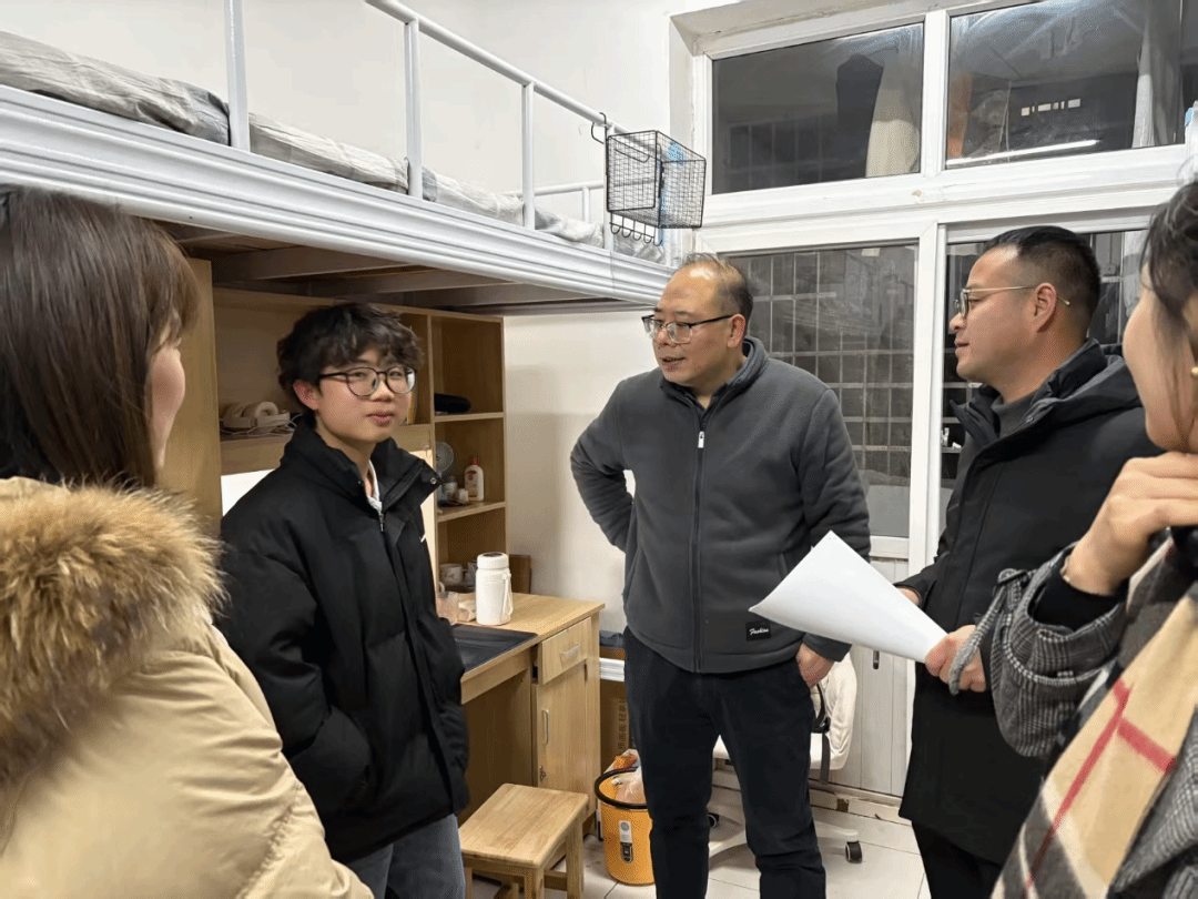 郑轶亲切询问同学们的生活近况。他对寝室卫生、用电安全等方面进行仔细检查,引导学生从细微处着手,以更加饱满的精神面貌迎接新学期。他提醒同学们要将寝室安全牢记在心,落实安全用电相关制度,保持整洁有序的寝室环境。同时,他鼓励同学们树立积极、正确的学习态度,努力学习专业知识、扎实本领,充分利用课余时间参与各类文体活动,度过充实、美好的大学时光。