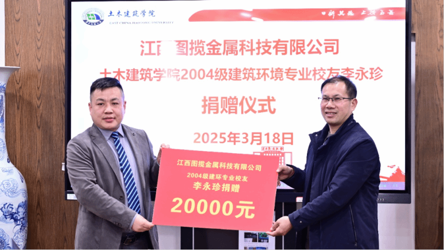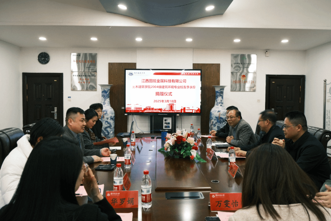 3月18日下午,土建学院在教9栋302会议室举行校友捐赠仪式,江西图揽金属科技有限公司总经理李永珍(尚香书苑