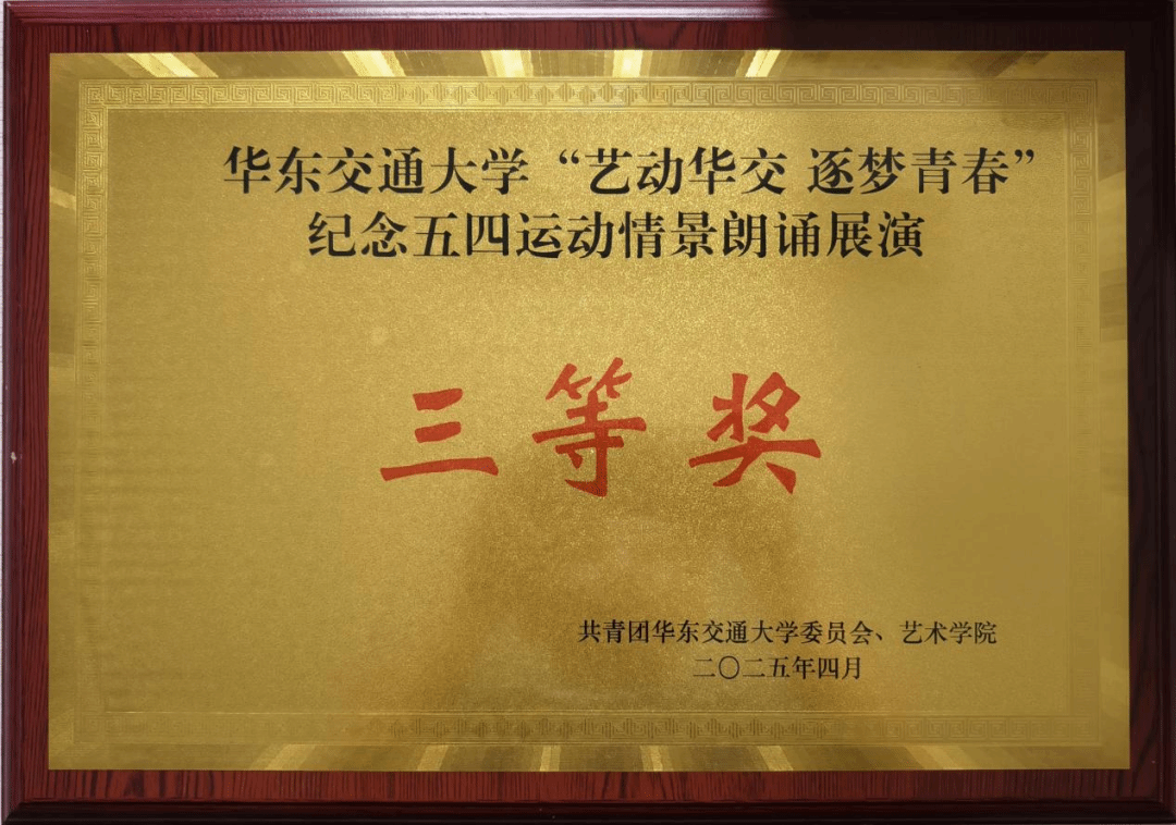 “艺动华交 逐梦青春”纪念五四运动情景朗诵展演活动中荣获三等奖。