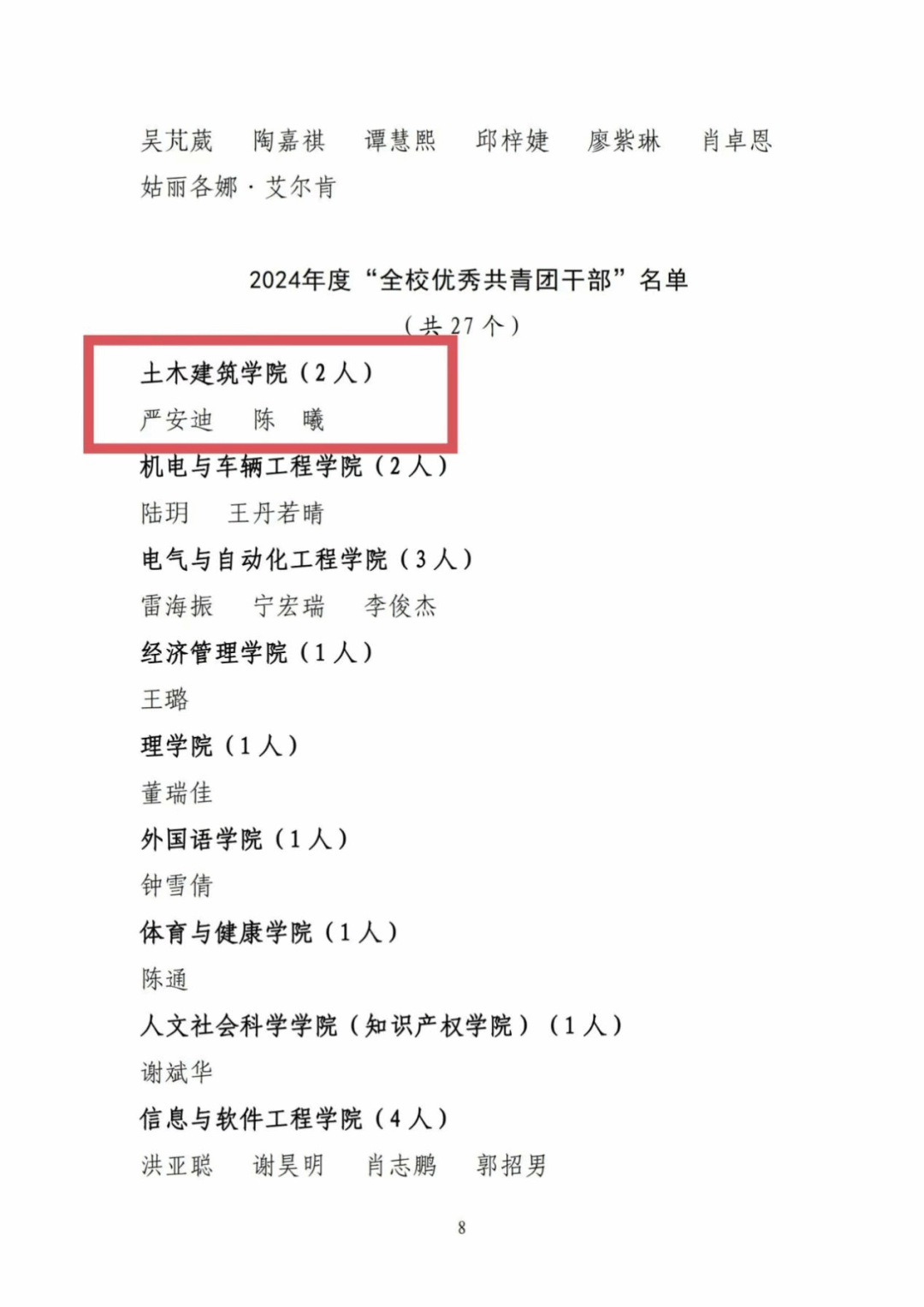 ●严安迪等2人获评2024年度全校“优秀共青团干部”,葛语欣等10人获评”优秀共青团员”。