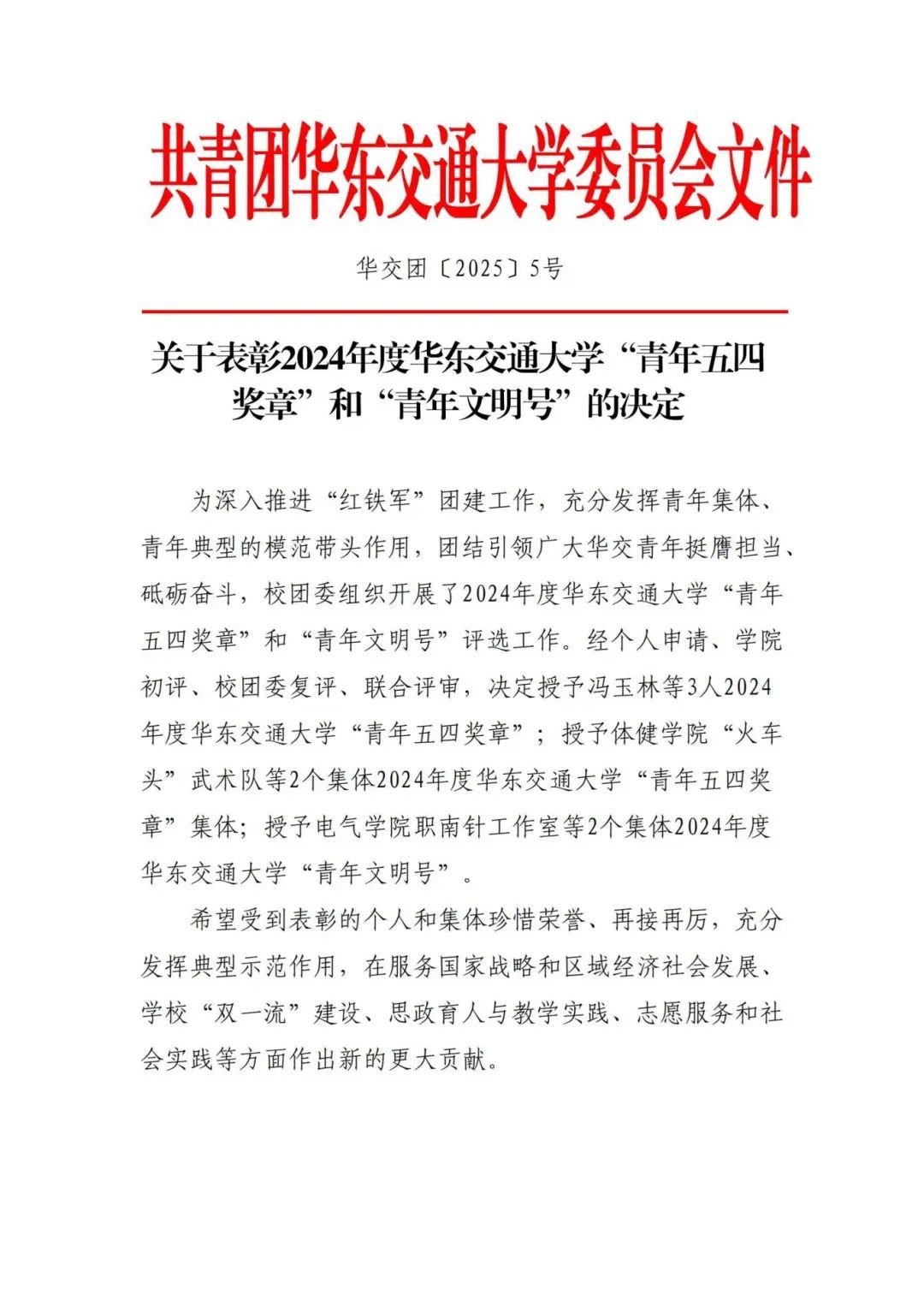 ●荣获2024年度全校“五四红旗团委”,4个团支部获评全校“五四红旗团支部”。